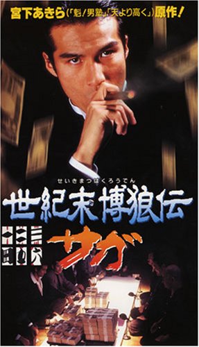 Seikimatsu Bakuroden Saga (世紀末博狼伝サガ- aka Legend of the End-of-Century Gambling Wolf Saga) is a 1997 live-action movie based on the manga of the same name by Miyashita Akira. Saga is the self-proclaimed greatest gambler in the world. Despite being down on his luck, his talents are recognized by Nakase, a chairman of a hotel in the middle of a hostile takeover, who puts the fate of the hotel into Saga’s hands. Saga is thrown into two high-stakes games of the traditional Japanese card game “Tehonbiki”, against a dealer who has driven even veteran gamblers into retirement, and her master. The stakes? Five hundred million yen and the controlling interest in the hotel! The movie is directed by Masatsugu Takase and stars Kanai Shigeru as Saga, alongside Saito Yoichiro, Morisaki Megumi, Idemitsu Gen, Shikauchi Takashi, and Kusanagi Ryoichi.